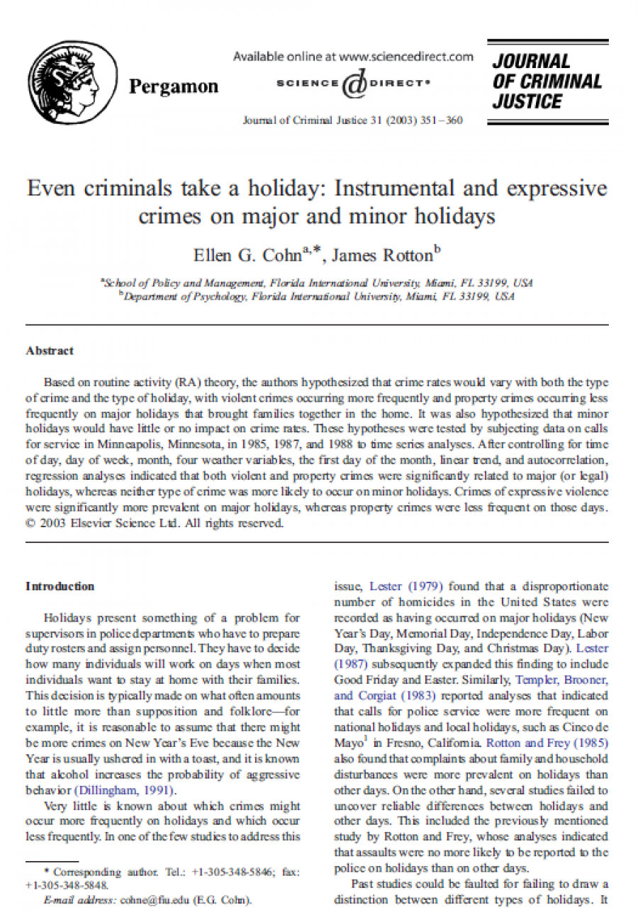 Even criminals take a holiday: Instrumental and expressive crimes on major and minor holidays