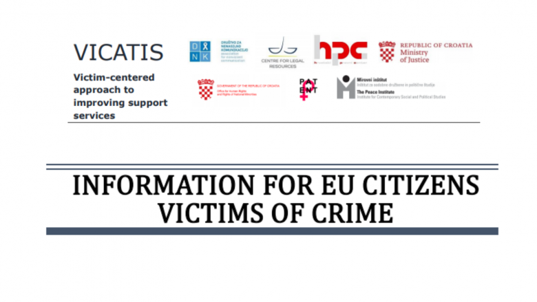 Together with the Croatian Legal Centre, the Service for Victim and Witness Support of the Croatian Ministery of Justice created this leaflet as part of Project VICATIS (Victim-centered approach to improving support services). It includes all necessary information in relation to a victim’s rights as European citizen and explains what you should know in case you become a victim of crime in Croatia.