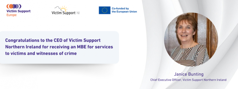 Congratulations to the CEO of Victim Support Northern Ireland for receiving an MBE for services to victims and witnesses of crime.