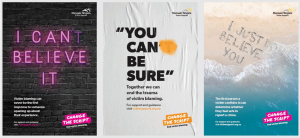This creative was not only visually impactful but it also presented the problem in a clear and straightforward way. They decided to frame the campaign around two-person conversations rather than graphic stories, to avoid retrumatisation and to emphasise on positive behaviour – “tell them it’s not their fault” – with trauma-informed speech – empowering rather than shaming as well as simple yet strong and sticky