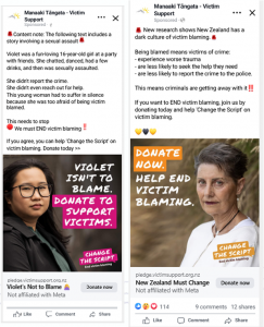 The success of this campaign can be attributed to Manaaki Tāngata | Victim Support’s constantly trying different things like new creatives, messaging and audiences. These campaigning efforts prove the importance of research and statistics for people to hear your message. To be able to expand your message on social media and on public spaces, you need to approach partner organisations, networks, media and advertising companies, as It never hurts to ask and everything helps.
