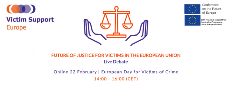 On the European Day for Victims of Crime, Victim Support Europe is organising an online debate on the “Future of Justice for Victims in the European Union“. We kindly invite you to join this online event that will take place on Tuesday 22 February 2022, between 14:00 and 16:00 CET.