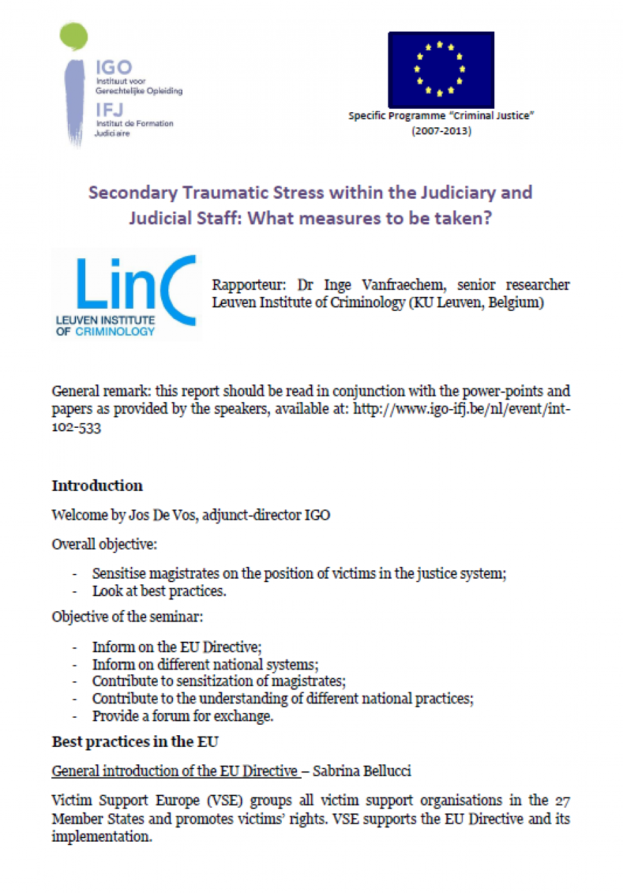 Secondary Traumatic Stress within the Judiciary and Judicial Staff: What measures to be taken?