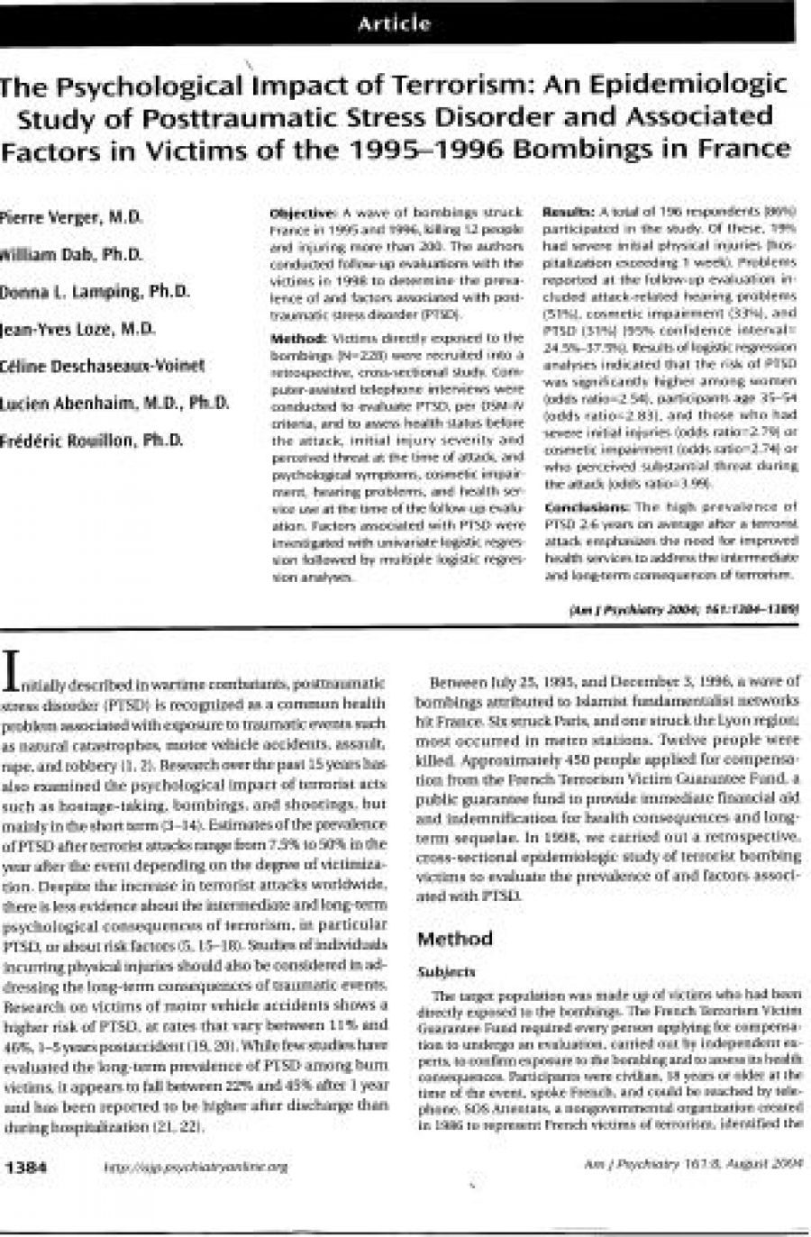 Searching for and Finding Meaning in Collective Trauma: Results From a National Longitudinal Study of the 9/11 Terrorist Attacks September 5, 2016 Continue reading