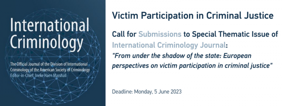 Victim Participation in Criminal Justice – Call for Submissions to Special Issue Journal November 29, 2022 The International Criminology Journal is preparing for a Special Thematic Issue, titled... Continue reading