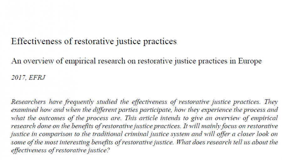 Effectiveness of restorative justice practices: An overview of empirical research on restorative justice practices in Europe June 17, 2020 Continue reading