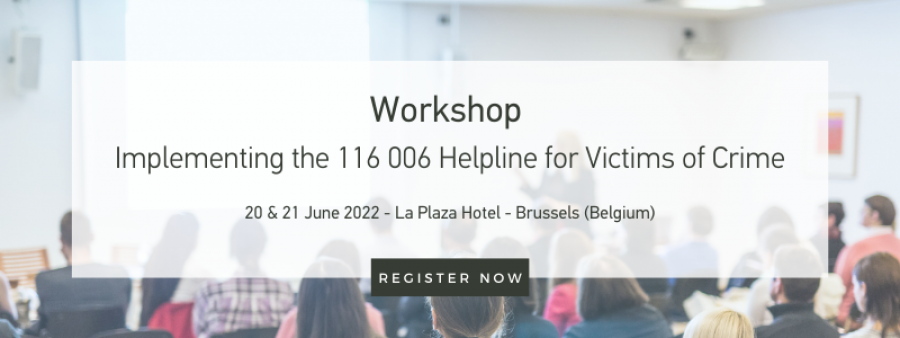 Invitation to workshop ‘Implementing the 116 006 Helpline for Victims of Crime’ May 31, 2022 Dear all, Victim Support Europe (VSE) is pleased to invite you to a workshop on ‘Implementing... Continue reading
