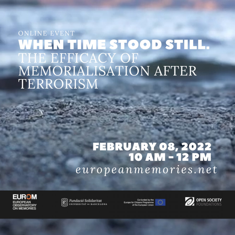 Online webinar on the efficacy of memorialisation after terrorism February 7, 2022 On 8 February 2022, European Observatory on Memories (EUROM) will organise a morning session... Continue reading