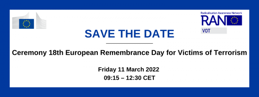 European Commission organises Ceremony 18th European Remembrance Day for Victims of Terrorism February 3, 2022 On Friday 11 March 2022, the European Commission will organise an event to mark the... Continue reading