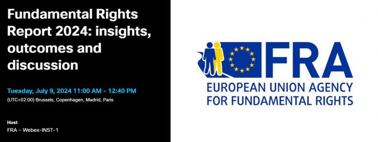 Join the European Union Agency for Fundamental Rights (FRA) for a discussion on the Fundamental Rights Report 2024 on Tuesday, 9 July, from 11:00am until 12:30pm CEST!